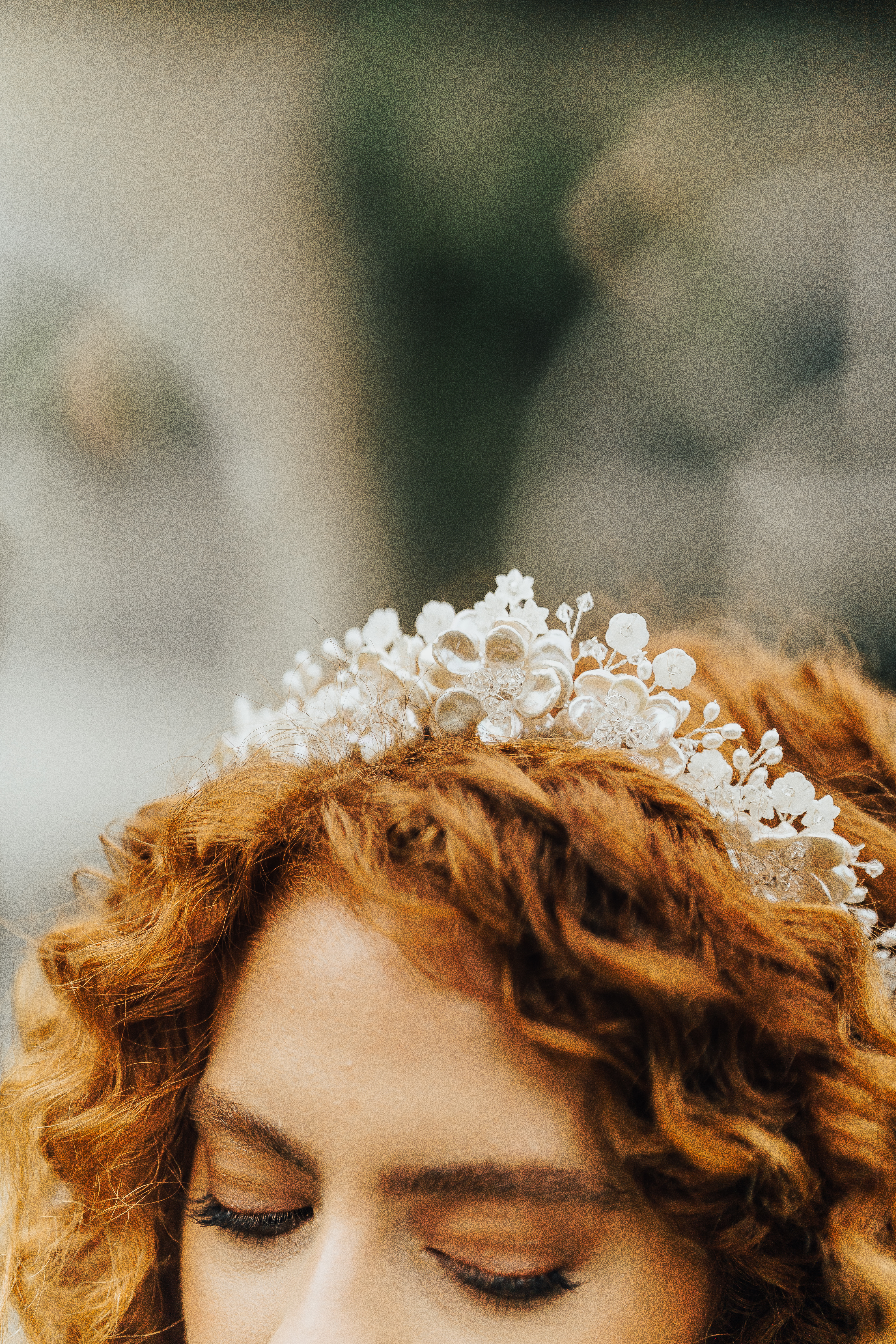 Hermione Harbutt is known for her beautiful, intricate headpieces, crowns and jewellery, using the finest components.