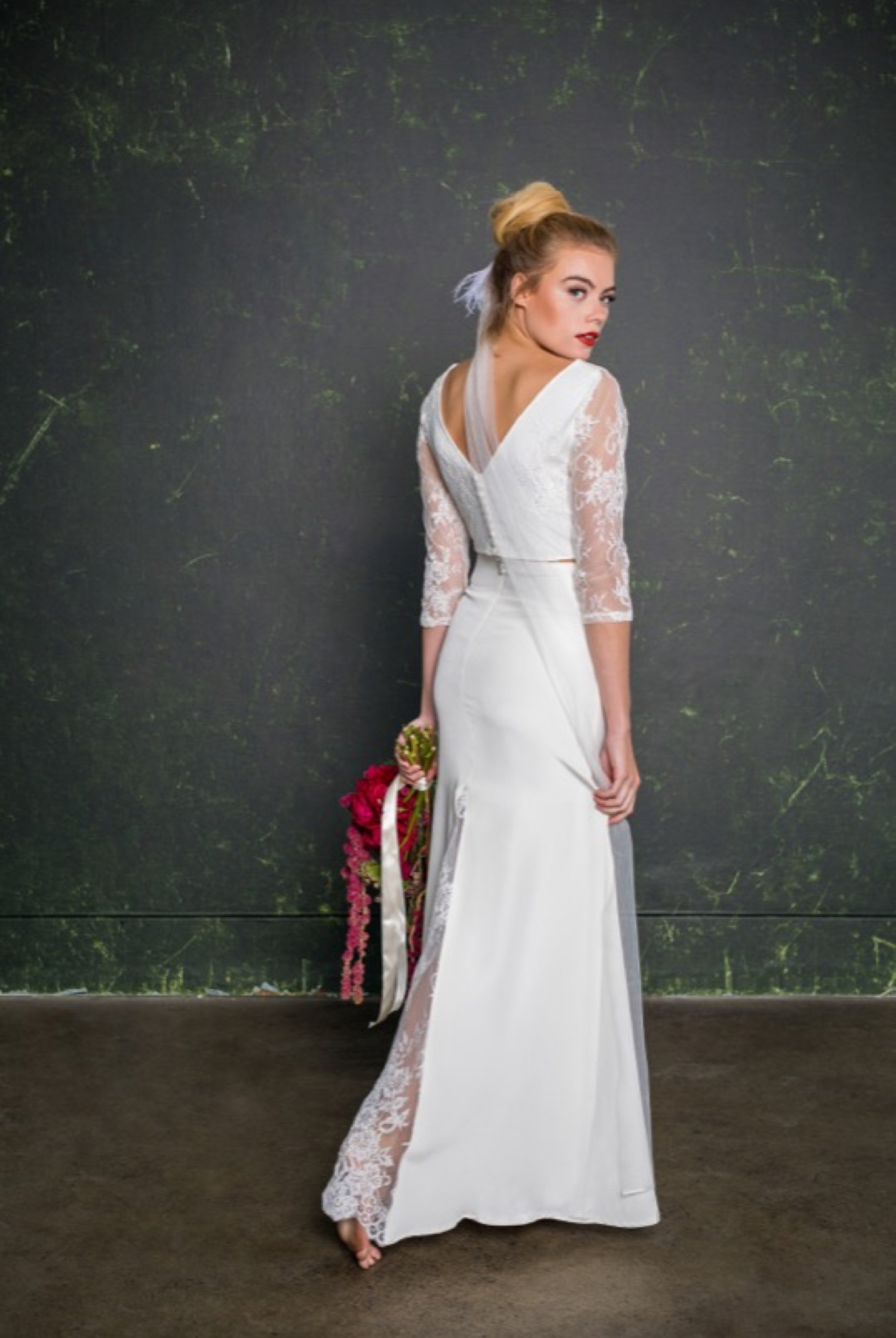 Gorgeous Ivory skirt made from 100% silk crepe de chine with a stunning godet lace insert! The train is a longer version!